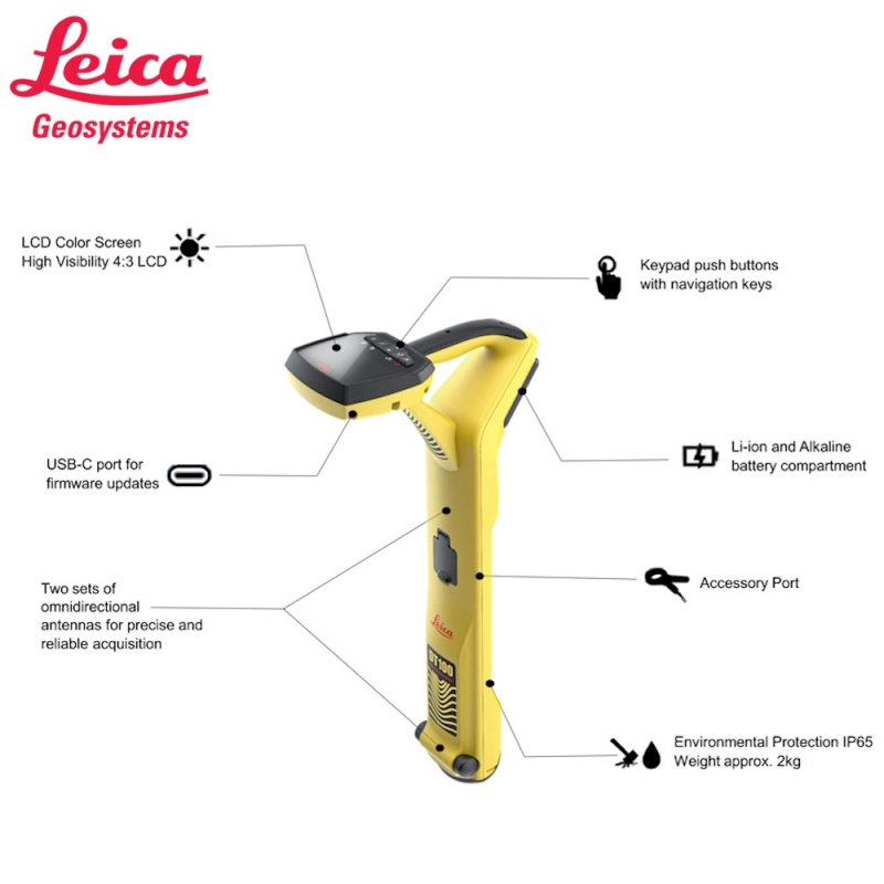 Lokator Leica DT100 omogoča napreden in natančen način za lociranje, sledenje in kartiranje podzemne infrastrkukture. Zahvaljujoč inteligentni obdelavi signalov in edinstvenim prilagodljivim načinom delovanja, sistem locira podzemne komunalne vode z najvišjo natančnostjo in zanesljivostjo, kar vam omogoča pridobitev zanesljivih in kakovostnih podatkov o vrsti in lokaciji, poveča vašo produktivnost in dvigne zaupanje v vaše rezultate.