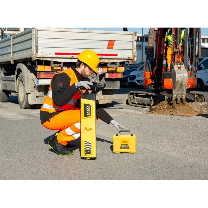 Oddajnik signala Leica DA300 se uporablja v povezavi z lokatorjem (Leica DD300 Connect) za lociranje, sledenje in določanje globine aktivnih in neaktivnih podzemnih vodov.